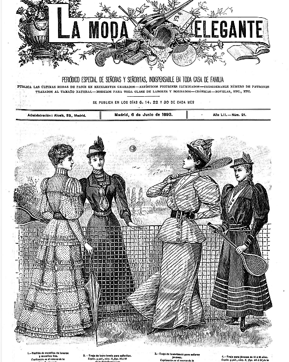 El Lawn-Tennis es va començar a practicar a Madrid per part de l’aristocràcia viatgera en contacte amb les últimes novetats de Londres o Paris. I l’impuls reial fa ser fonamental per a la seva difusió, primer cap les zones d’estiueig (primer Biarritz, després Zarauz, Santander, Sant Sebastià, …), i més tard es va consolidar a la capital. creant-se una demanda d’accessoris, però també de roba i complements per a les que necessitaven posar-se a to a principis de temporada, bàsicament amb l’objectiu de ser vistos i admirats. Vaja, com avui. I les publicacions que els donaven servei, els Hola del moment, no deixaven perdre l’oportunitat.