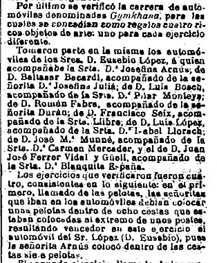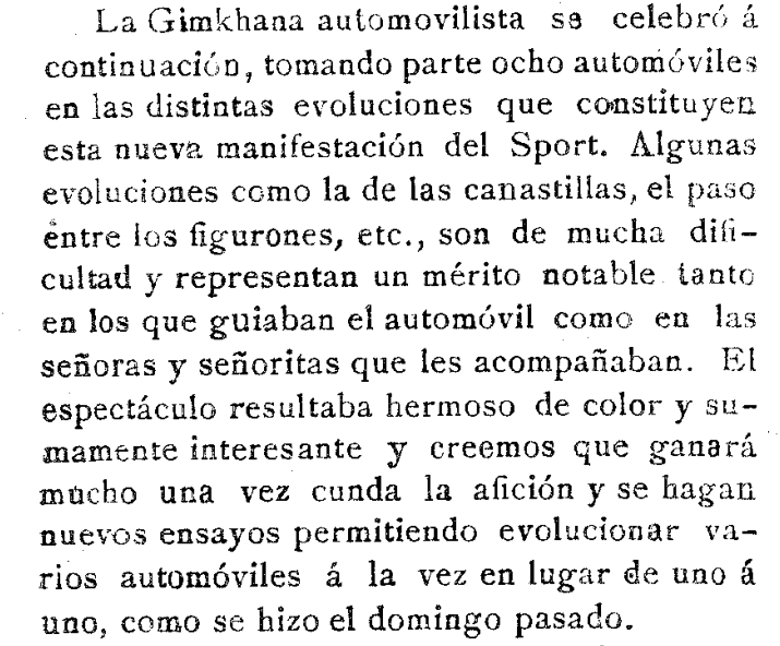 Dia d’hipòdrom. Després dels cavalls animals, és el moment de lluir els cavalls dels automòbils. Se’ls havia acudit fer una Gincana. Una de les proves era la que El Mundo Deportivo ens descriu: