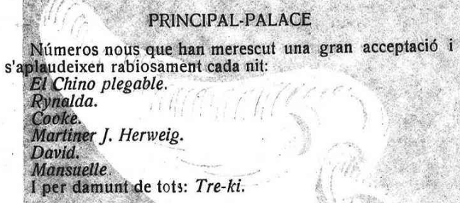 En canvi, amb el pas dels dies es va anar incrementant l’interès per altres números de l’espectacle. Especialment “El chino plegable“. A tenor de la postal de promoció, es compren la raó: