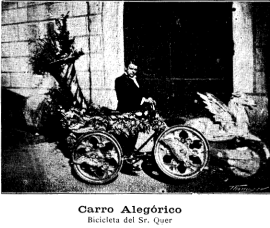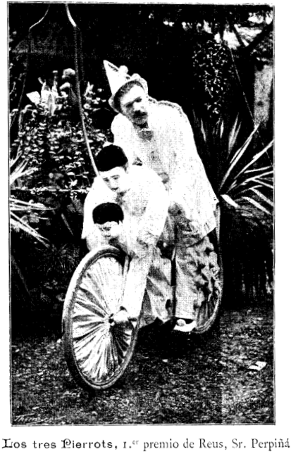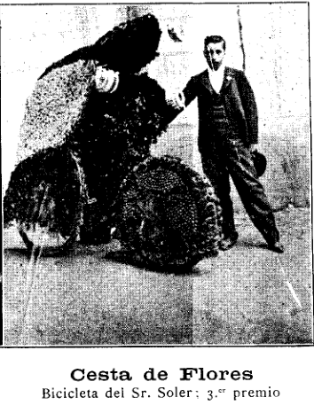 La diada es celebra, i les bicicletes llueixen, amb un guanyador: “En el concurso de màquinas adornadas efectuado anteayer se concedió el primer premio á la bicicleta representando los payasos, presentada al concurso por el ciclista señor Perpiñá, a quien enviamos la enborabuena por la justa recompensa que se le ha tributado. Por esta vez, la opinión, casi unánime, hubiera fallado, con el Jurado, á favor del señor Perpiñá.” (dia 24, p. 1).