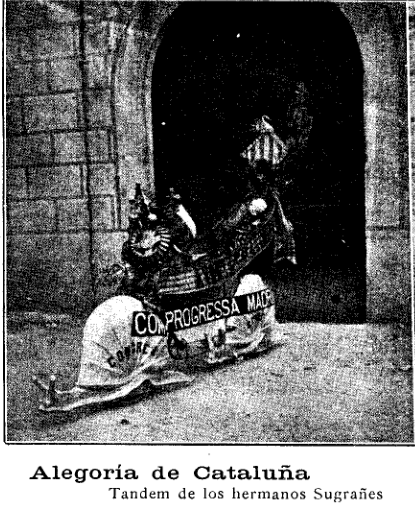 7° Alegoría de Cataluña trabajadora, tàndem de los hermanos Sugrañes.