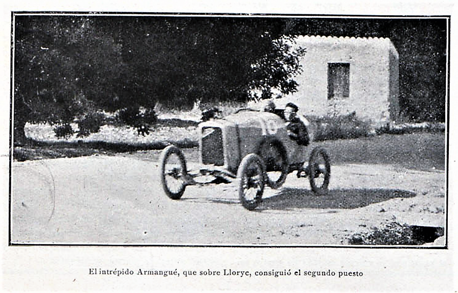 “Le trophée Armangué. Le Circuit de Tarragone mesurait 30 km. Et ne comptait pas moins de 37 virages, c’est dire que la course fut très dure. C’est une nouvelle et magnifique performance pour Salmson. Très belle défense des voiturettes Loryc, licence de la voiturette française E. H. P. Les voiturettes Elizalde partirent très handicapées, modèles de tourisme pesant 650 kg.