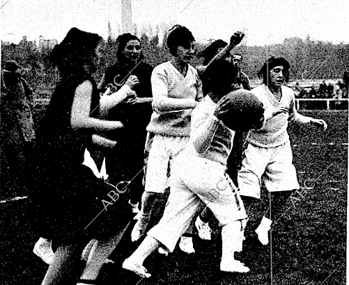 Y comenzó la enconada lucha. Confesamos desconocer con detalles la técnica del juego del “basket-ball”. El fin a conseguir es que una pelota como las de balompié vaya a introducirse por un cesto circular situado a unos dos metros de altura. Se ha de lograr ésto impulsando la pelota con las manos. Claro es que un grupo intenta la realización del objetivo y otro trata de obstaculizarlo. Parece que la pelota puede arrebatarse de las manos de quien la lleva, puesto que no puede avanzar así con ella más de tres pasos. Eran las jugadores escolares más rápidas y más diestras. En vano las del Madrid trataban de oponerse, sin conseguir otra cosa que caer al suelo y hacer que cayese también la enemiga.
