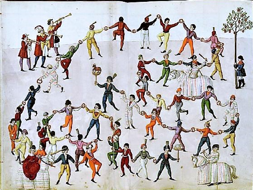 (p. 185) “e cascú sesforça de fer solaces e deports per alegrar lo senyor rei e los infants.”