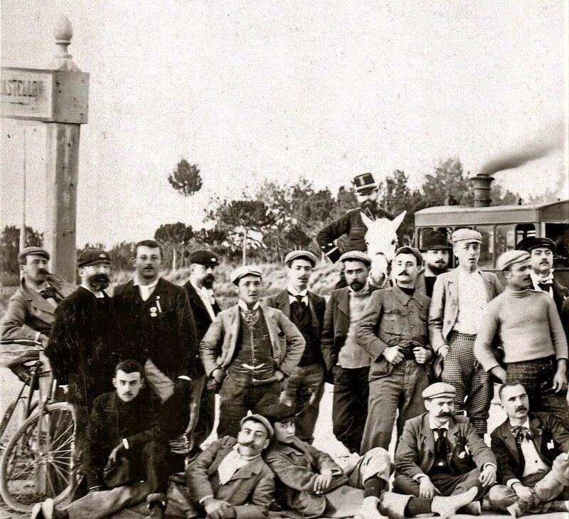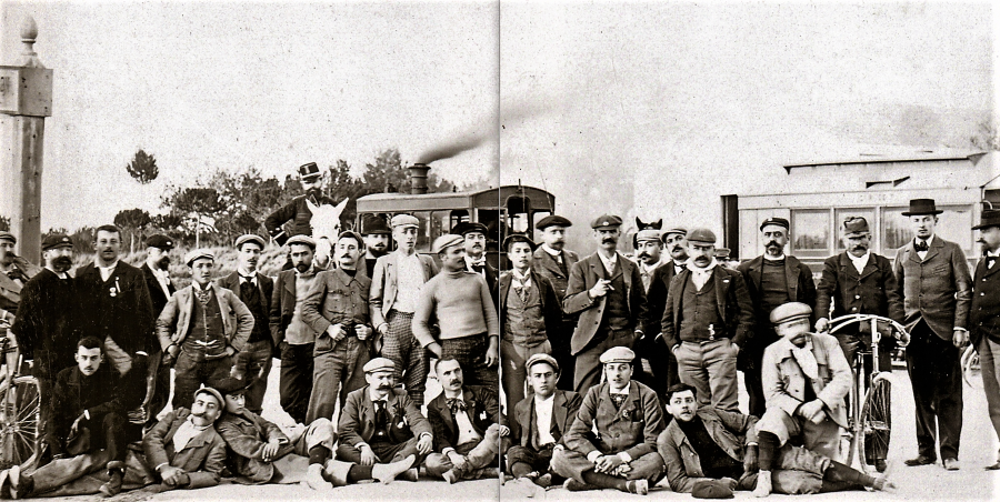 La pàgina dreta s’encapçala amb la llegenda “Excursió oficial a Salou dels clubs velocipedistes de Reus i Tarragona un 14 de març del principi del segle XX.” Dons bé. Sembla que podem datar-la correctament, i posar nom als 30 participants, tots els que capta l’objectiu de la fotografia. En ella es palesen les magnífiques relacions entre els dos clubs. I l’excusa per trobar-se probablement va ser la presentació en societat de la nova Junta directiva del Club Velocipedista de Tarragona: “Presidente honorario, D. Emilio Goupille; presidente efectivo, D. Luis Norregaard; secretario, D. Juan Ruiz y Porta; tesorero, don Roberto Guasch; vocales, D. Pablo Bargalló y D. Enrique Rovira; capitán de ruta, don William Tarin.” (04/02/1897 La Cruz, p. 2).