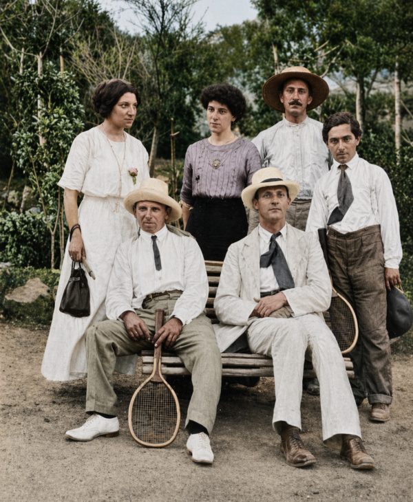Aquí és on la raqueta de la fotografia pren sentit. A la imatge, els artistes i els seus amics no apareixen com a intèrprets en trànsit cap a la glòria, sinó com a estiuejants moderns, gent d’un món cosmopolita que també es defineix pels seus codis de sociabilitat: el jardí, el blanc d’estiu, la conversa, el joc, la fotografia, l’automòbil i la visita cultural. No cal convertir Casals en tenista per entendre que aquella raqueta diu molt. Diu que l’esport, abans de ser popular i reglamentat a gran escala, també fou una cerimònia social de les elits cultes.