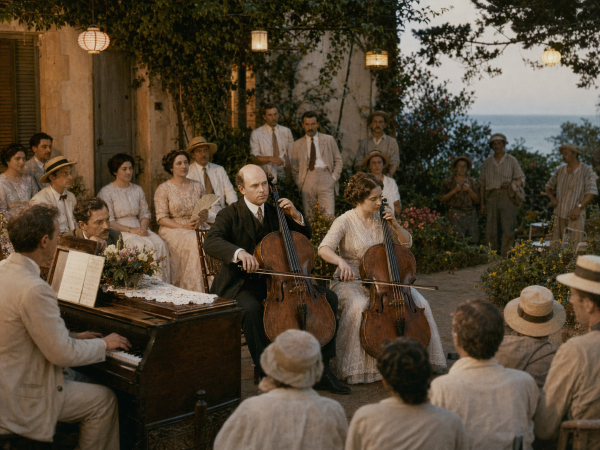 Villa Casals, a la platja de Sant Salvador, no era només una casa d’estiueig. Aquell agost funcionava com una mena de petit port musical europeu. Hi van passar l’Enric Granados, estrella musical en alça, el vendrellenc Benvingut Socías, el jove pianista Mieczysław Horszowski, geni precoç i Donald Francis Tovey, professor i musicòleg britànic vinculat a Oxford, molt amic del català. La premsa explicava que Casals preparava la seva tournée de tardor i hivern, amb una activitat vertiginosa que podia arribar als 120 o 130 concerts anuals. Entre correspondència, visites i assaigs, la casa respirava una barreja de feina, amistat i celebració artística.