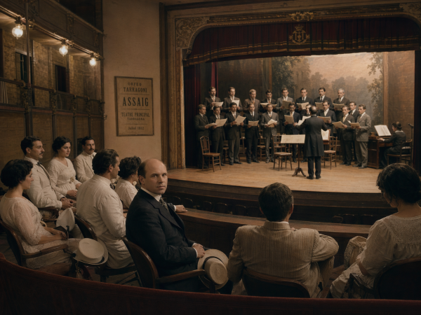 De retorn, Tarragona els va oferir una altra escena: l’assaig de l’Orfeó Tarragoní al Teatre Principal. No era un concert de gala, sinó una vetllada més íntima, gairebé domèstica en el millor sentit cultural de la paraula. L’Orfeó va cantar peces populars i religioses, i després es van ballar sardanes amb la cobla de Santa Cecília. Per als visitants estrangers, aquella nit devia tenir un punt de descoberta: Catalunya no es presentava només amb monuments o discursos, sinó amb veus, dansa, instruments i un públic que es reconeixia en allò que escoltava.